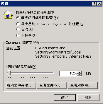 将“检查所存网页的较新版本”设置为“每次访问此页时检查”