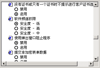4.将其他下的“软件频道权限”设为“安全度-低”,将“使用弹出窗口组织程序”设为“禁用”