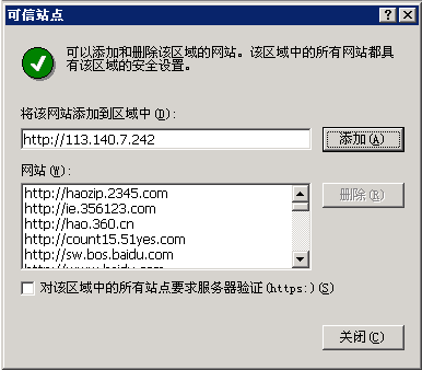 2. 打开“工具”-“Internet选项”,在安全选项卡下,选择受信任的站点,点击“站点”按钮,再点击添加。