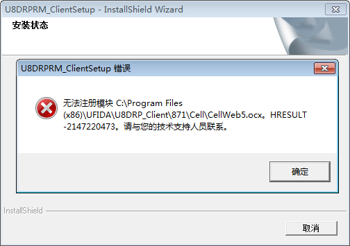 安装U8DRP_ClientSetup客户端工具时,如果存在则要先行卸载,然后重新安装,在安装和卸载时可能会出现一个错误,并不影响使用。